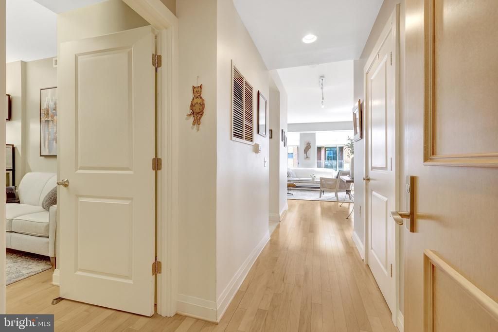 Welcome to Midtown at Reston Town Center—where luxury, convenience, and community come together. This beautifully positioned second-floor residence offers a rare blend of privacy and charm, overlooking a quiet cobblestone street and tree-lined courtyard—an unexpected retreat within a vibrant urban setting. Inside, a true entry foyer creates a warm sense of arrival, leading to a light-filled layout with seamless flow between the living, dining, and kitchen areas, as well as private outdoor spaces. A versatile den, thoughtfully separated from the primary suite, provides ideal flexibility for a home office or guest space with convenient access to a full bathroom with step in shower. Features include natural wood flooring, a spacious kitchen with island, custom closet systems, and a serene primary suite with a soaking tub and room-darkening shades—creating a comfortable and refined living experience. Recent updates enhance both style and functionality, including custom Hunter Douglas shades in the living room (2025), GE microwave (2022), dining room chandelier (2021), custom closet systems (2020), Phantom rollaway screens for both patios (2020), bedroom room-darkening shades (2019), and a Honeywell HVAC system (2019). Prior to the current owner’s purchase in 2019, the residence underwent a comprehensive renovation featuring designer paint and trim, hardwood flooring, updated kitchen cabinetry with granite countertops, stainless steel appliances, washer & dryer, and refreshed bathrooms with granite countertops and white vanities. Midtown’s resort-style amenities elevate everyday living with 24/7 concierge service, on-site management, underground parking, a library, conference room, fitness center, outdoor pool with hot tub, great room, private movie theater, two patio grilling areas, and two guest suites. Just steps from premier dining, shopping, entertainment, and Metro access—with miles of nearby trails and easy access to Dulles Airport and Washington, DC—this location offers the perfect balance of peaceful living and connected convenience. For added peace of mind, the seller is offering a one-year Cinch Home Warranty. What truly sets this home apart is the lifestyle—resort-style amenities, a welcoming community, and everything you need just outside your door. Don’t miss this exceptional opportunity.